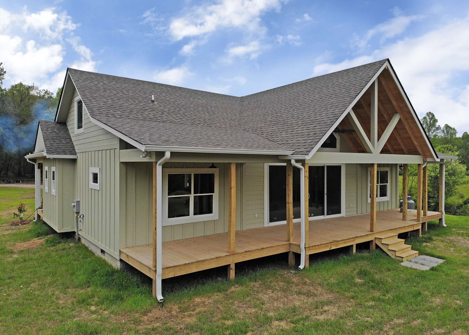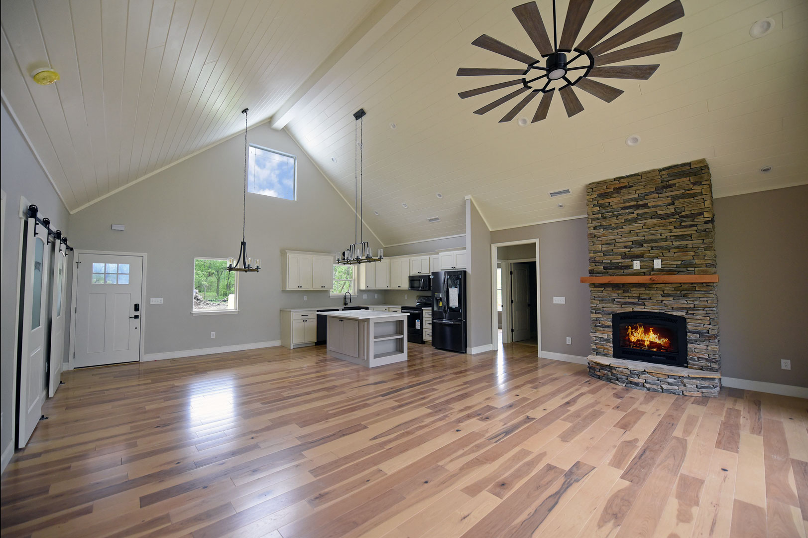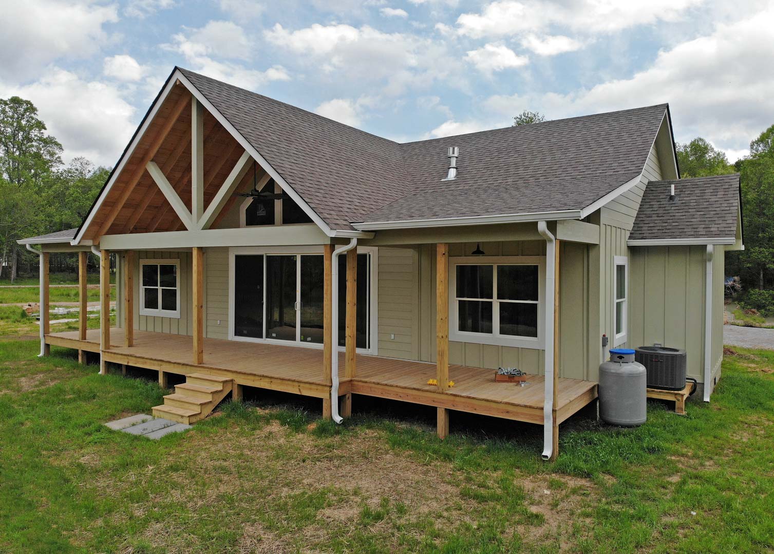 The Modern Farmhouse plan features 3 bedrooms and 2 baths with walk-in closets in every bedroom. Large eat-in kitchen with open floor plan and bar top island. Spacious porches with vaulted ceilings, gable windows, and a 16 ft. sliding door allows lots of light into the living area. This is a home for people who enjoy the views, outdoors, and entertaining. Features include high efficiency gas fireplace, high efficiency heating and air system, spray foam insulated, and low maintenance exteriors.