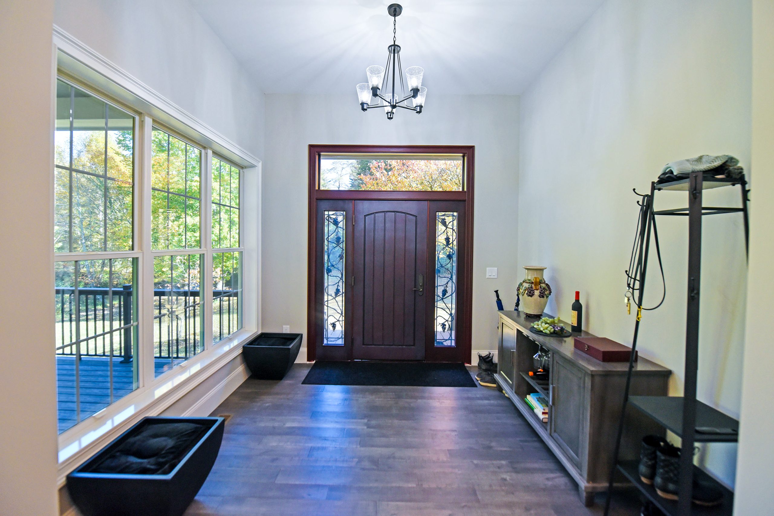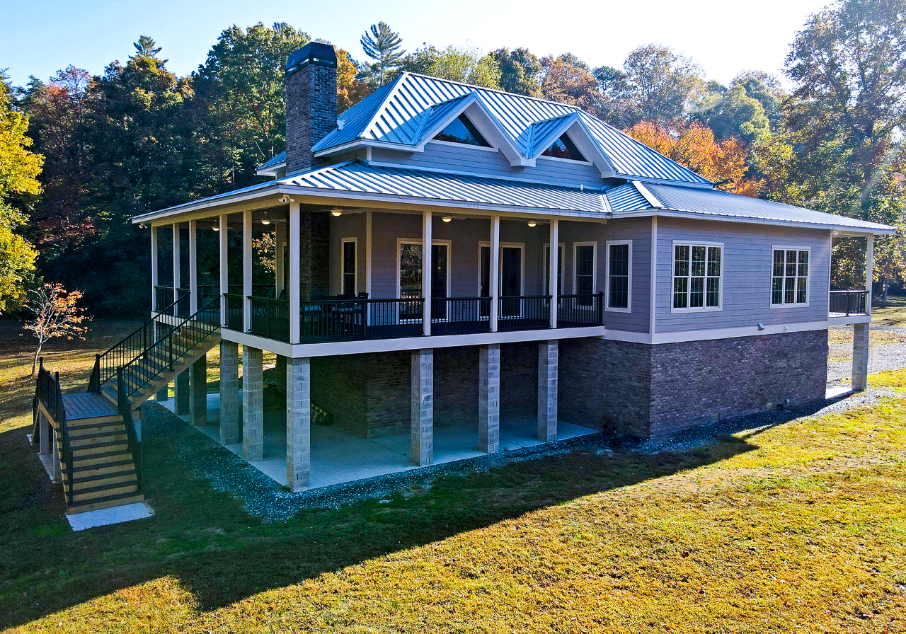 This home is 3000 sq ft with 3 bedrooms, 3.5 baths, and a double garage on the lower level. It features large wrap around porches and an outdoor fireplace to take advantage of the river frontage. Low maintenance exterior finishes include standing seam metal roofs, trex decking, powder coated aluminum railings, Hardi siding, and brick veneers. Interior finishes include oak and tile floors, T&g vaulted ceilings, large open kitchen, custom trims and ceilings, tile showers, and very classy fixtures and finishes. Energy efficiency details include Geothermal heating and cooling, Spray foam insulation, On demand water heating, and Marvin Essentials series windows and doors.